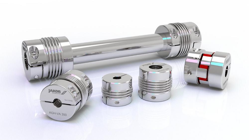 Die Reihe KGH-VA ist verschleiß- und wartungsfrei, bis 350 °C einsetzbar, umfasst Wellendurchmesser von 7 – 85 mm, Drehmomentbereiche von 10 bis 1200 Nm und ist in variabler Baulänge mit 2- oder 4-welligem Balg erhältlich.