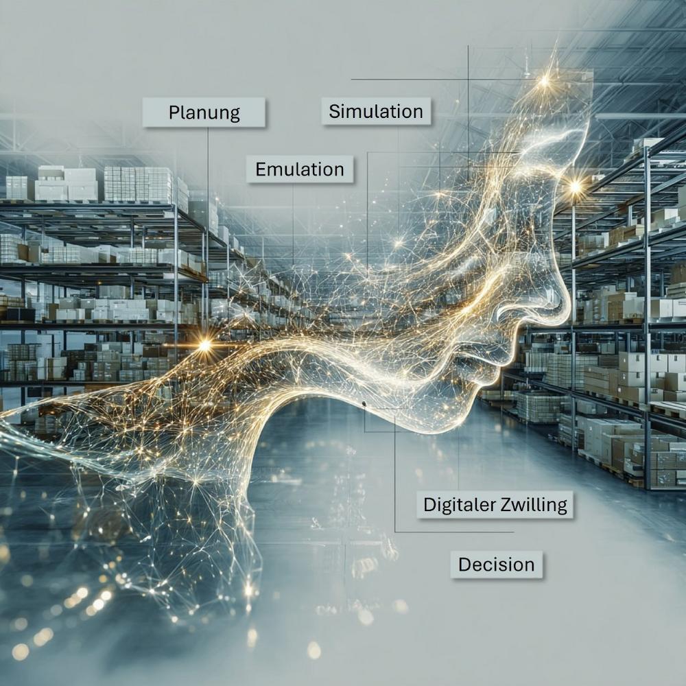 Die Planung schafft Transparenz über Prozesse, Materialflüsse und Restriktionen. Darauf aufbauend macht die Simulation sichtbar, welche Auswirkungen Veränderungen tatsächlich haben. Und zwar frühzeitig, bevor sie umgesetzt werden. Die Emulation testet reale IT- und Steuerungssysteme unter praxisnahen Bedingungen noch vor dem Go-live. Digitale Zwillinge ermöglichen es den Unternehmen letztlich, Entscheidungen permanent im laufenden Betrieb zu überprüfen und weiterzuentwickeln.