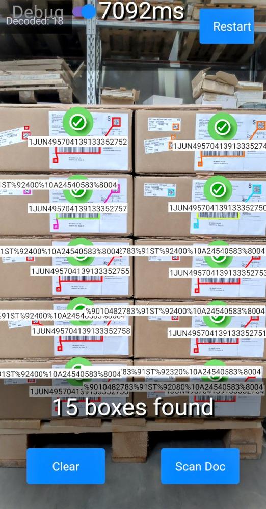 Das vom Benutzer mit Hilfe der Kamera des Zebra Mobile Computer aufgenommene Bild wird hinsichtlich Auftrag- und Mengenbarcodes ausgewertet und den entsprechenden Kartons zugeordnet. Gleichzeitig werden die Kartons auf der Palette verortet, sodass nicht nur deren Anzahl bestimmt wird, sondern auch deren Position auf der Palette. Die gesammelten Daten werden im Anschluss mit dem SAP-System abgeglichen (Auftrag, Material, Menge).
