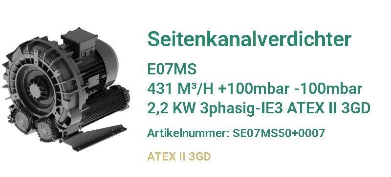 Kompakte Effizienz für ATEX-Zone-2/22-Anwendungen Der Seitenkanalverdichter E06MS348 verbindet ATEX-Zertifizierung (Kategorie II 3G/D) mit hoher Leistungsdichte für industrielle Luftförderanwendungen. Mit einem…